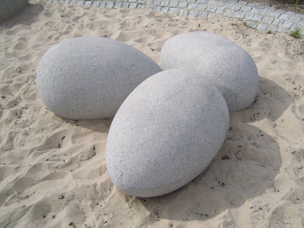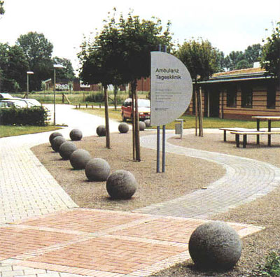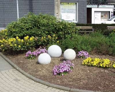 Kugeln mit quadratischen Grundplatten erleichtern ein Einbinden in die Pflasterfläche.
