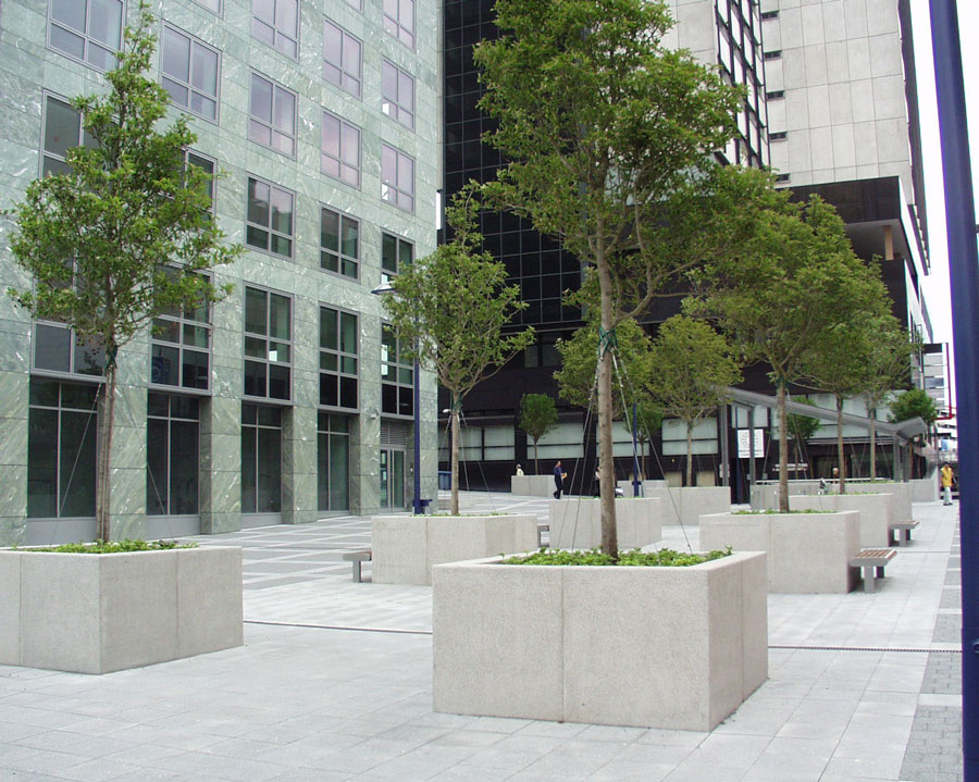 Sechseckige Pflanzgefäße sind mit Durchmessern 150cm und 190cm erhältlich.