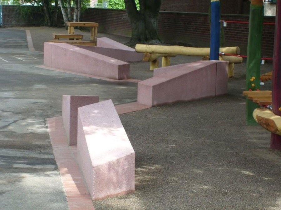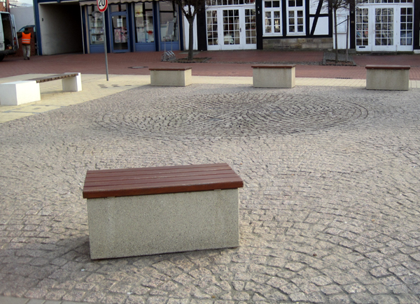 Es sind viele Formgebungen für Sitzbänke denkbar. Hier ein Beispiel der Wellenbank.