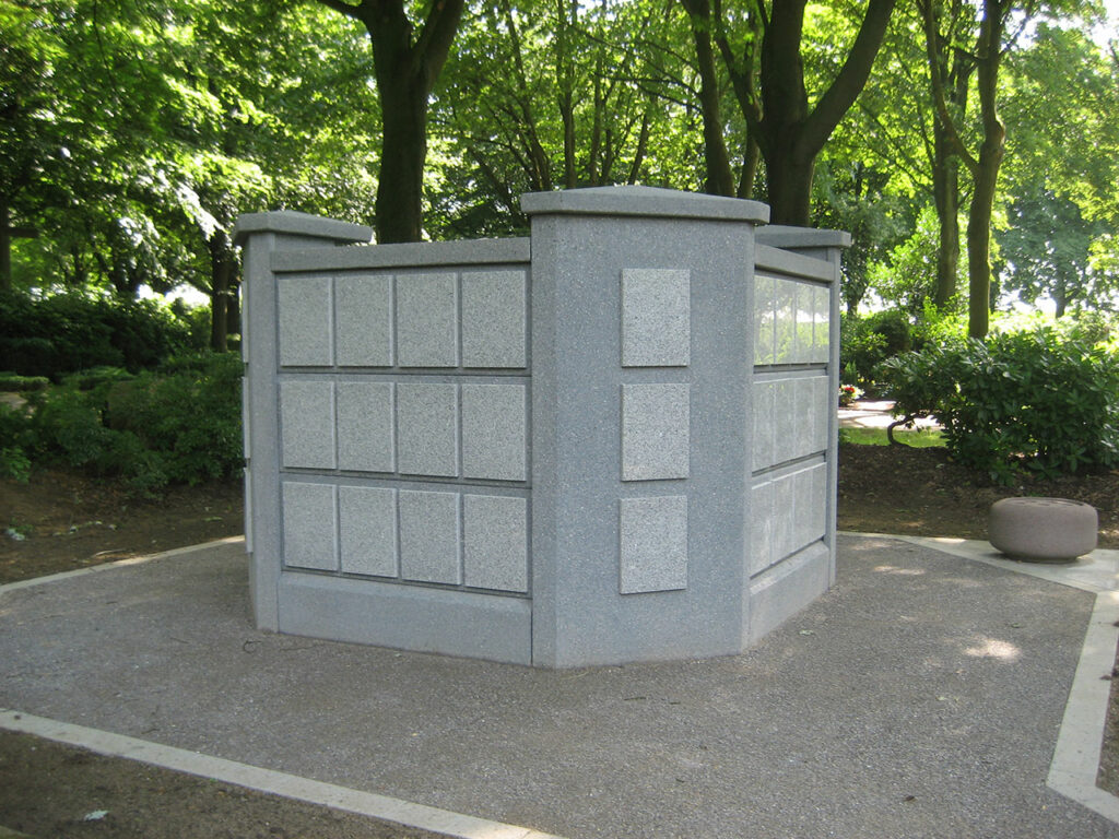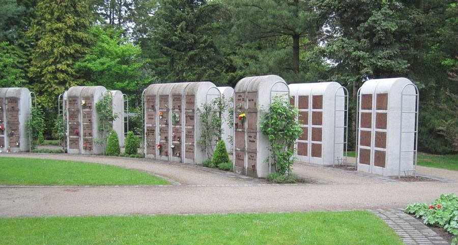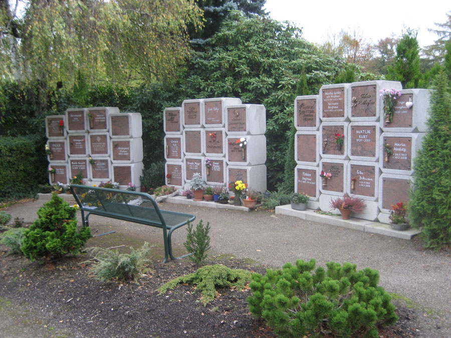 Die 4-seitige Belegung des Kolumbariums auf kleinem Raum bietet ungestörte Privatsphäre für den einzelnen Besucher.