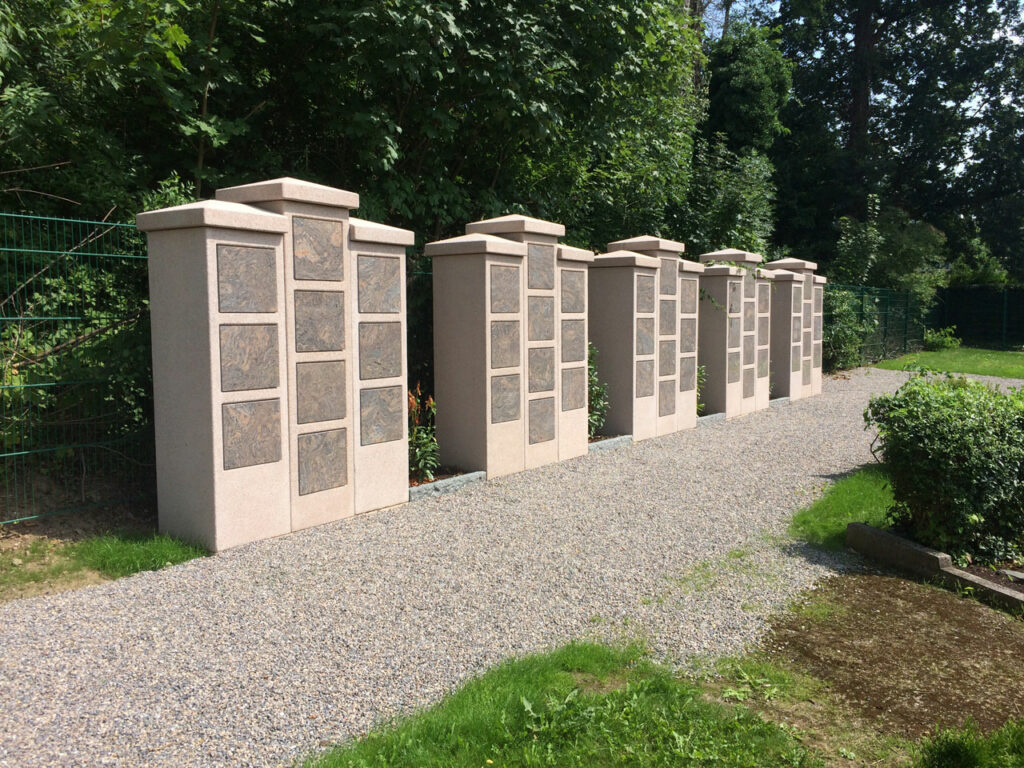 Das Urnenwandsystem Novum besteht aus einzelnen Urnenstelen die beliebig aufgestellt werden können.