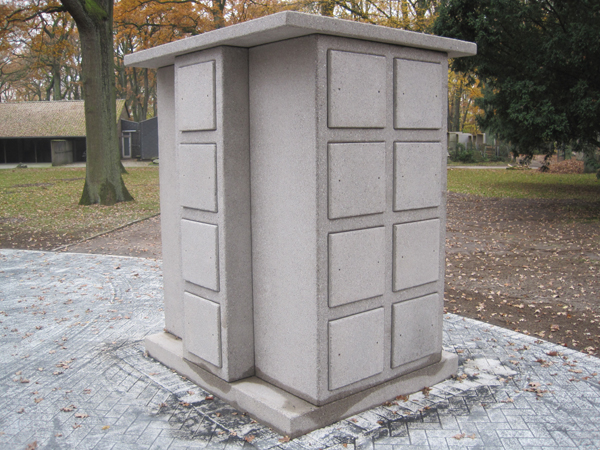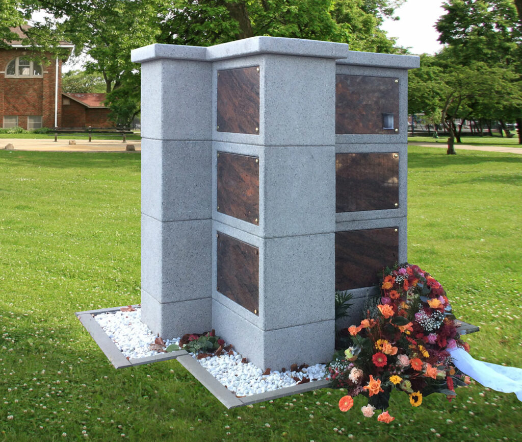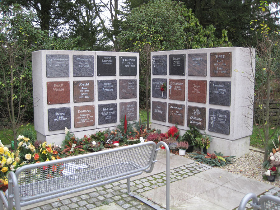 Eine von zwei Seiten zugängliche Urnenstele. Auf der Vorder- und Rückseite befinden sich jeweils 4 Urnenkammern.