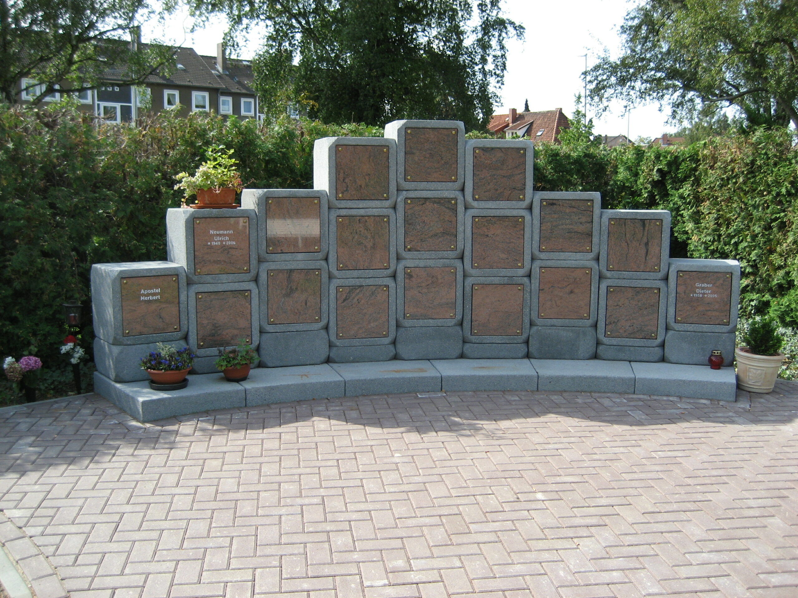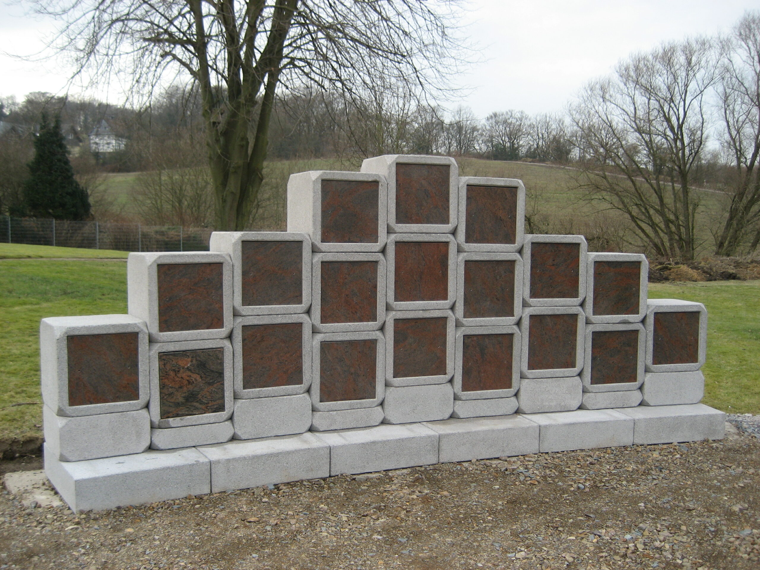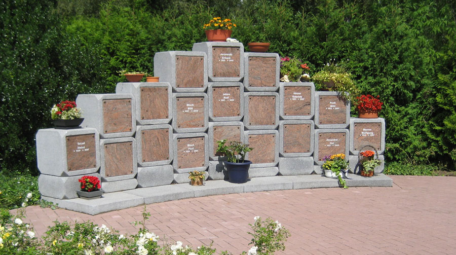 Das Urnensystem bietet Ihnen vielfältige Möglichkeiten bei der Anordnung und Gestaltung der Urnenwände. Als Urnenwandsystem ist es ohne Aufwand leicht und problemlos erweiterbar und kann nach Bedarf mit weiteren Quadertypen ergänzt werden. Durch eine radiale Anordnung der Urnenquader ab einem Durchmesser von 2,30m besteht auch hier eine einzigartige Planungsvielfalt. Bogen und Kurvenverlauf der Urnenwand passen sich so den örtlichen Begebenheiten an. Urnenquader sind speziell entwickelte Urnensysteme die gerade durch die große Variante der Aufbaumöglichkeiten – gerade – höhenversetzt – radial – treppenartig pyramidal – diagonal kreuz oder sternförmig – aufgebaut werden können.