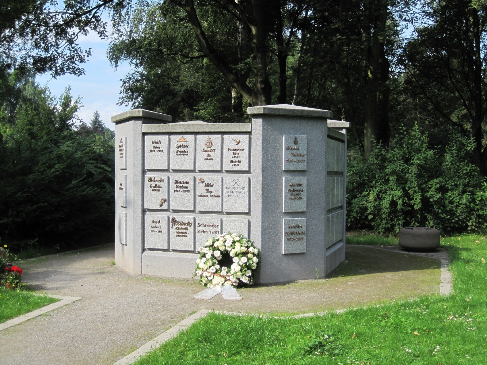 Die von vier Seiten zugängliche Urnenwand bietet Platz für 60 Urnengrabkammern auf gerade einmal ca. 3m x 3m Raum. Trotz dieses Raumvorteils findet der Trauernde doch die nötige Ruhe zum Gedenken.