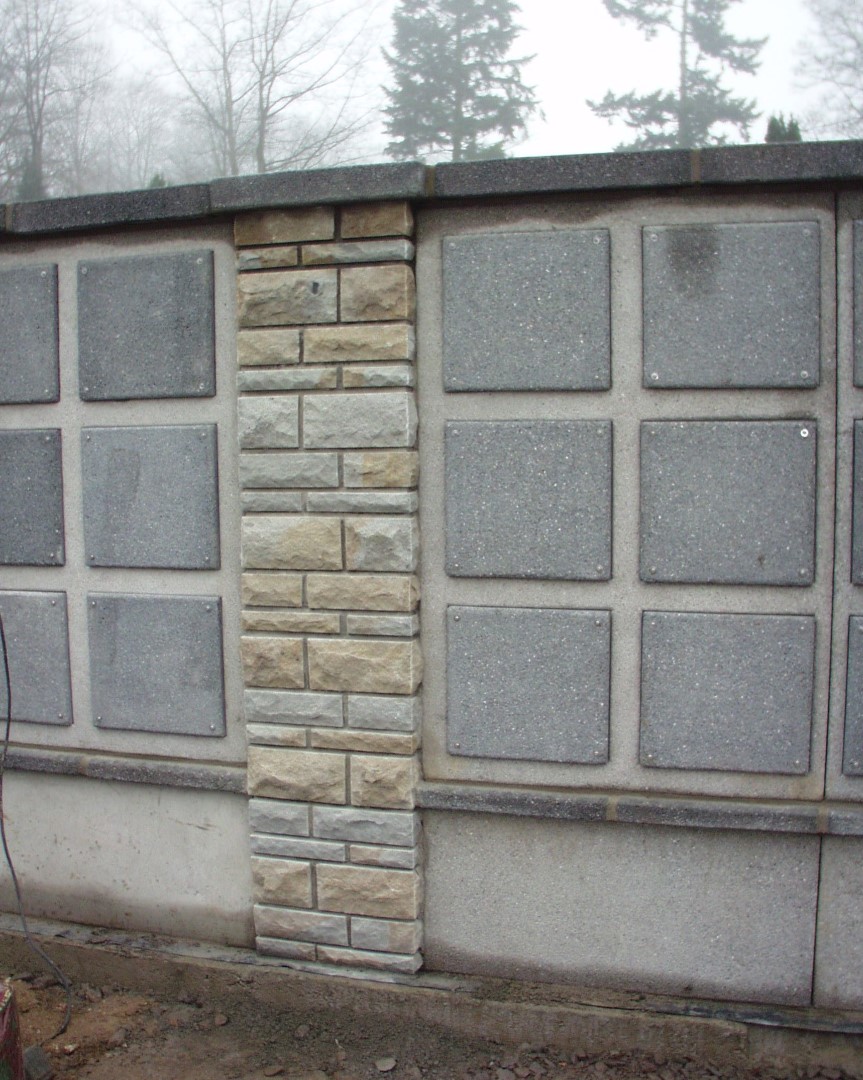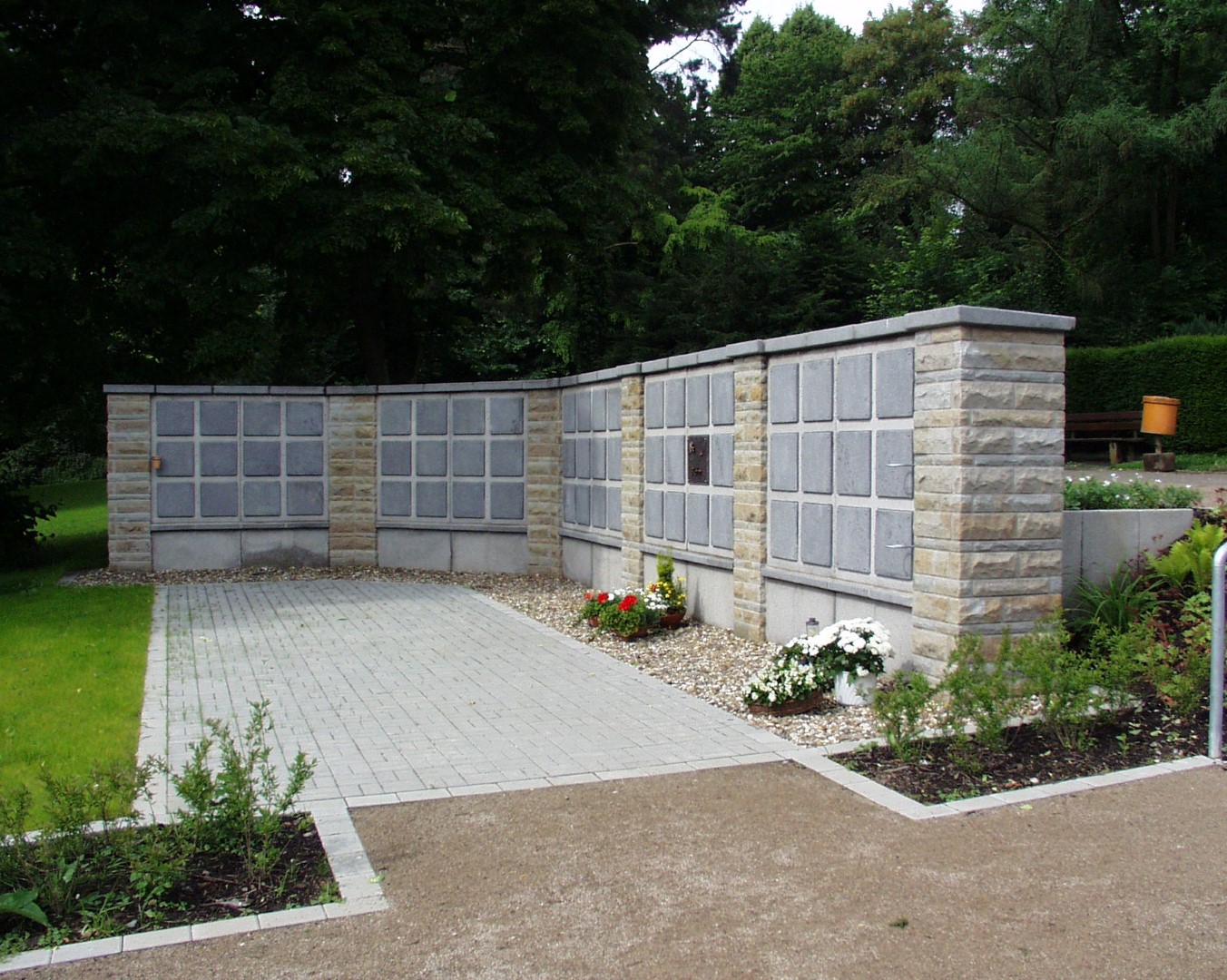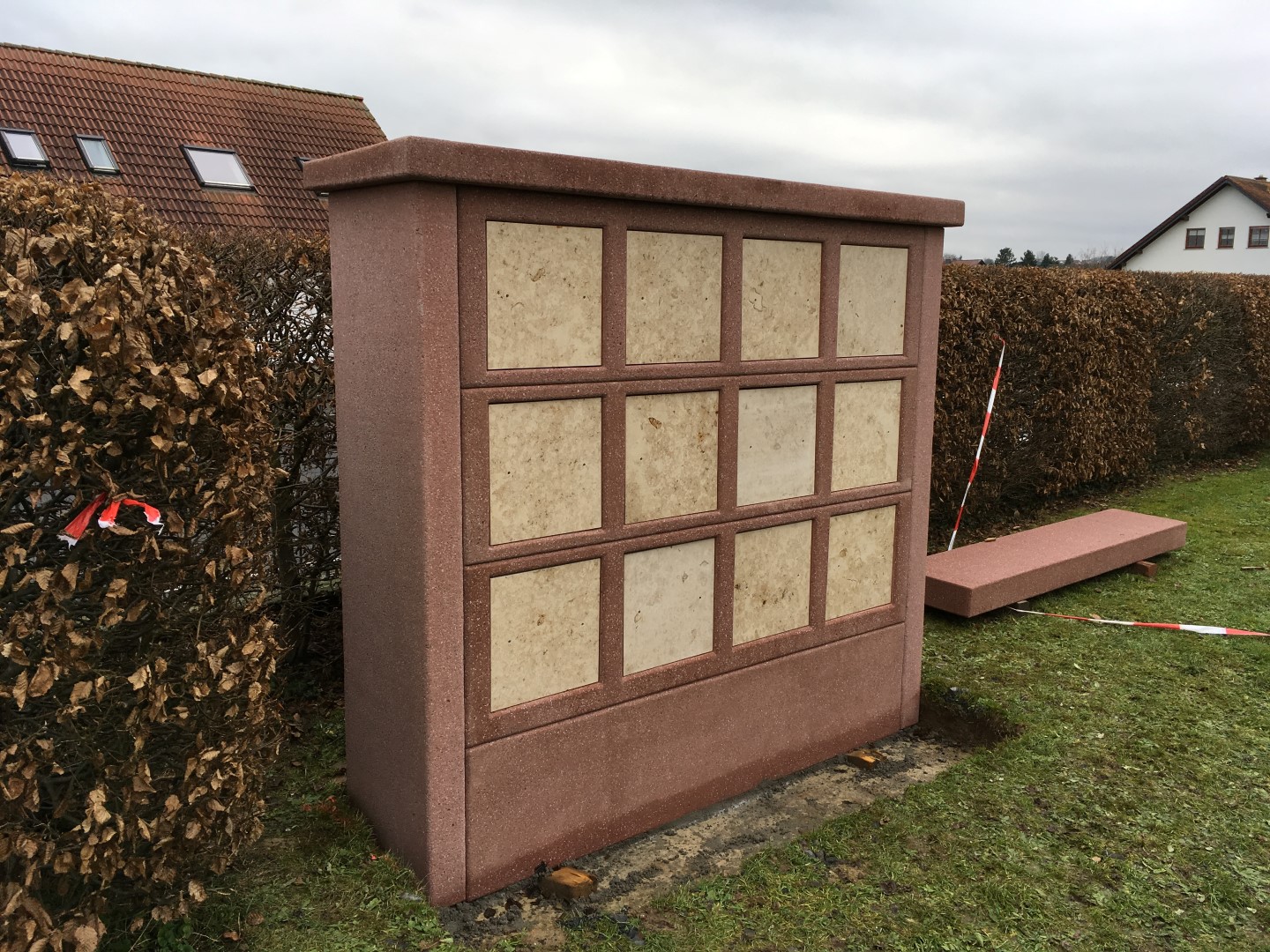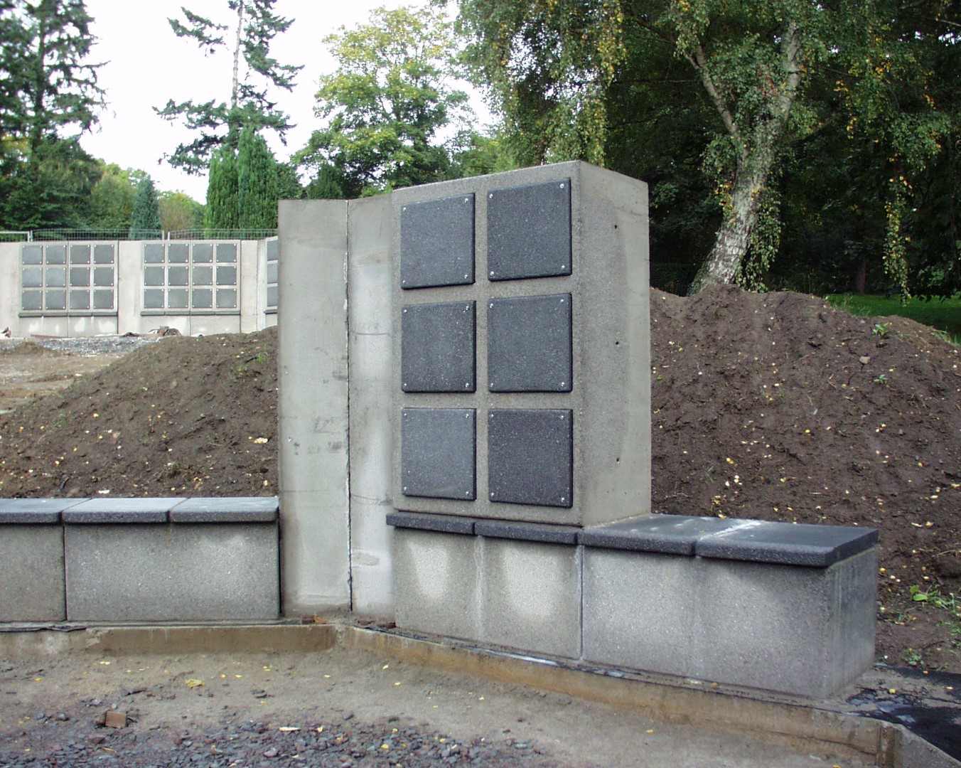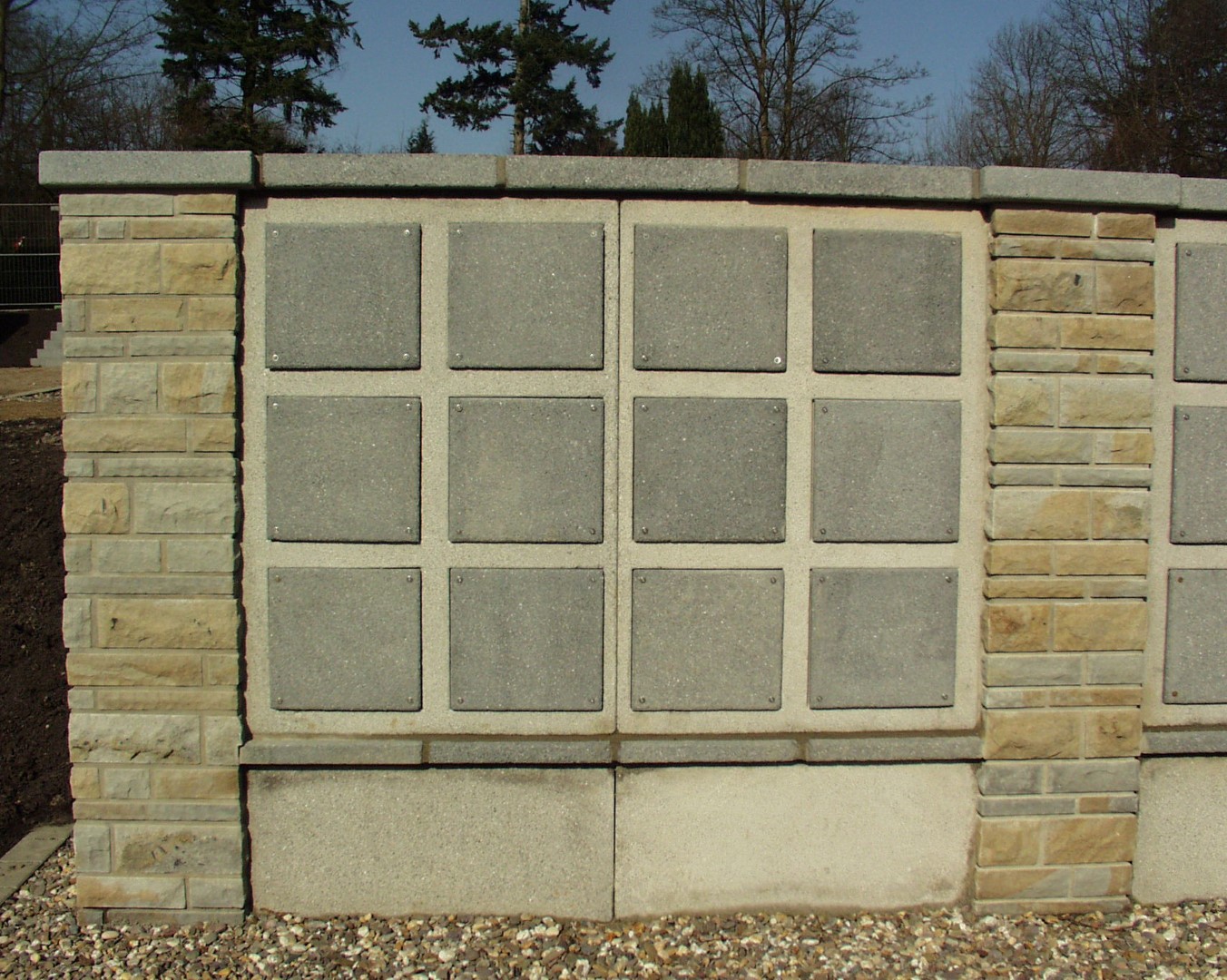 Mit dem System Röltgen Urnenwandsystem hat man eine große Variationsmöglichkeit in Form, Größe und Gestaltung. Unterschiedlichste Kammerngrößen für zwei, drei oder vier Urnen in horizontaler und vertikaler Anordnung können durch Pfeiler eingefasst werden. Urnenwandabdeckungen gestaltet wie übliche Mauerabdeckungen bilden einen horizontalen Abschluss.