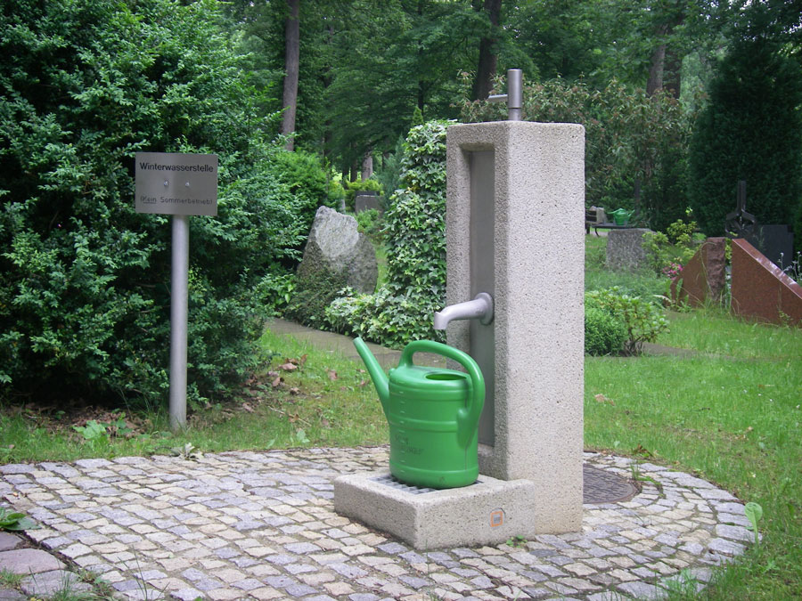 Die RölTec Frost-Linie – Innovation: Frostfreie Wasserversorgung das ganze Jahr. Die Problematik der Wasserversorgung auf Friedhöfen in der Übergangszeit ist hinreichend bekannt. Frühe Frostperioden im Herbst, sowie Nachtfröste im Frühjahr, führen bislang dazu, dass nicht immer eine problemlose Wasserversorgung von November bis März gewährleistet ist. Sehr zum Unwillen der Besucher, die zeitig mit der Frühjahrsbepflanzung beginnen möchten, wird das Leitungsnetz der Friedhofzapfstellen erst mit Wasser freigestellt ,wenn im Regelfall nicht mehr mit Frost zu rechnen ist. So führten in der Vergangenheit gerade die erwähnten Situationen nicht selten zu Schäden an den Leitungen, wenn dem Drängen der Friedhofsbesucher nachgegeben wurde.